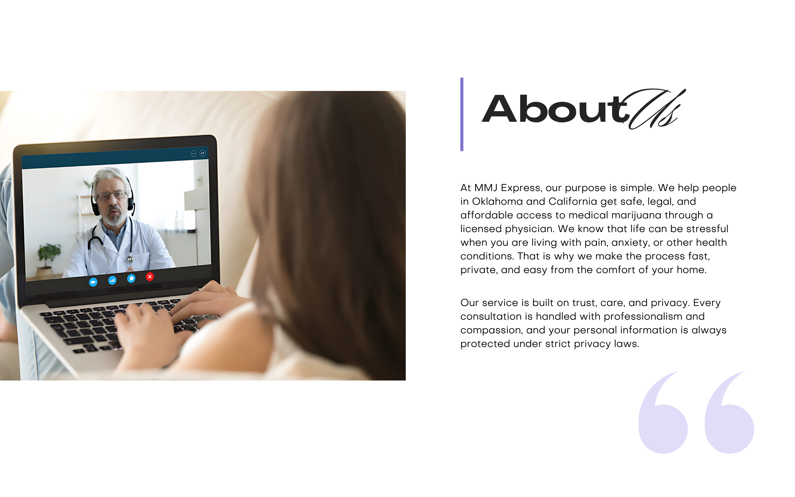 Your evaluation is done by a certified physician who understands medical marijuana and patient care.